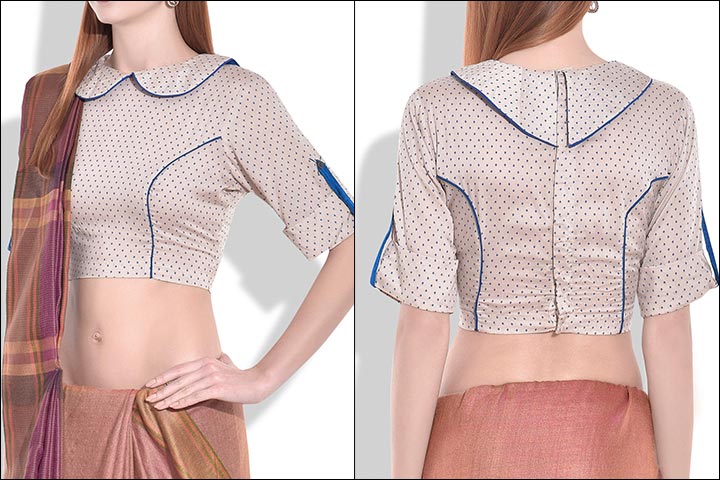1.Peacock Blue Blouse with deep U tiable thread back neck