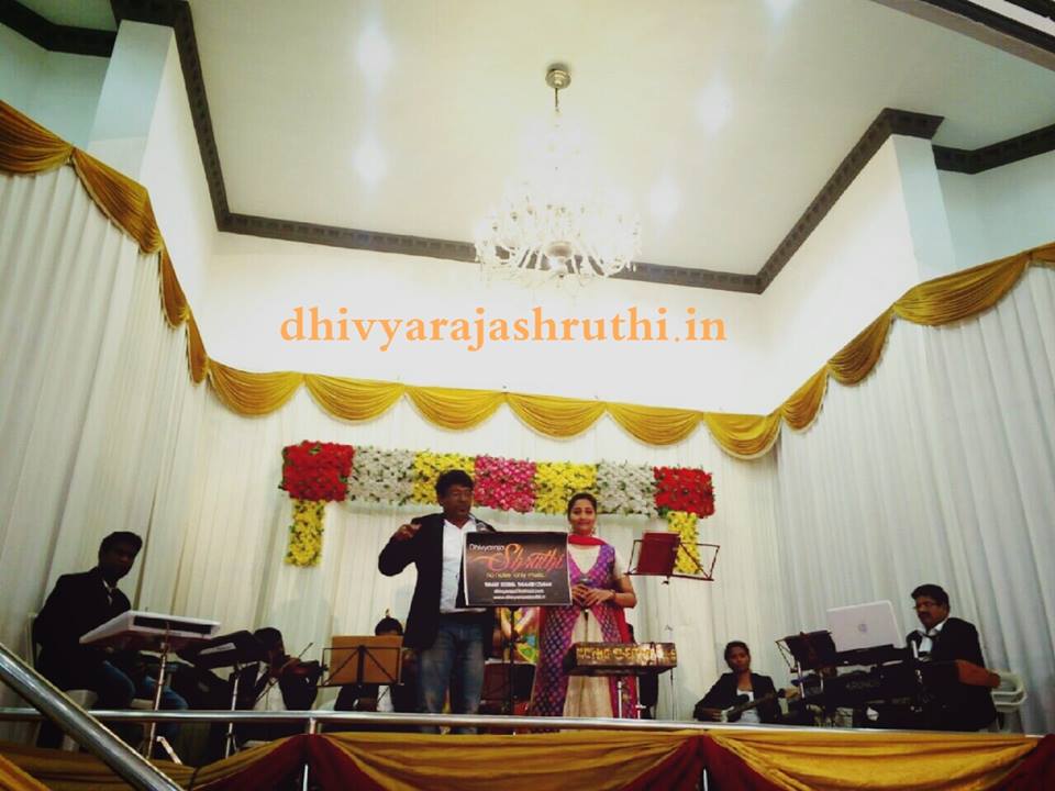 DHIVYARAJA SHRUTHI,started in 1985,have performed over 3000 light music shows all over the country and have won the hearts of several music lovers.Most of the people are running their orchestra just as a hobby,but DhivyarajaShruthi Music Orchestra is professionaly engaged in this field with customers satisfaction as the only target.Quality is our primary objective and for that they we have a trained band of musicians.Our song list comprise wide range of hits which includes melody,western,folk and peppy numbers.Special consideration is given on sound production.For that we have Digital Mixing Console in our live shows which is normally used in professional recording studios.Our well disciplined musicians in black blazers gives you a royal ambience which is very much required in every aspect of life nowadays.All these factors have made us one of the "best orchestras in Chennai".Dhivyaraja Shruthi performs "light music", "Instrumental Music","Karaoke Shows" and "DJ Shows" in tamil.telugu